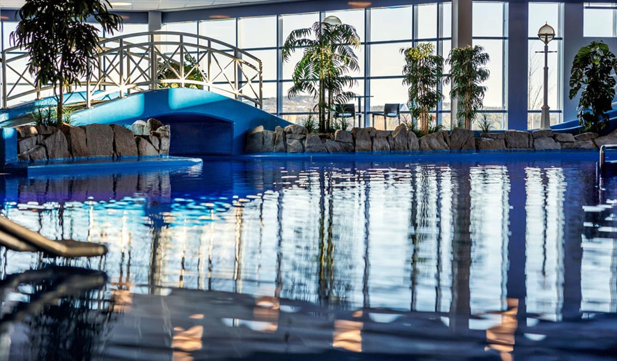 Vår badepark er hele 4000 kvadratmeter stor, og med 31 grader i vannet hele året er dette det nærmeste du kommer et tropisk paradis i Norge. Badeparken er en populær helgeaktivitet i vinterhalvåret, og redningen for feriefolket når sommeren svikter. Og når sommeren smiler, har vi naturligvis et basseng utendørs også. Det kan selvsagt brukes om vinteren også - for i vannet er det alltid deilige 31 grader - inne som ute!