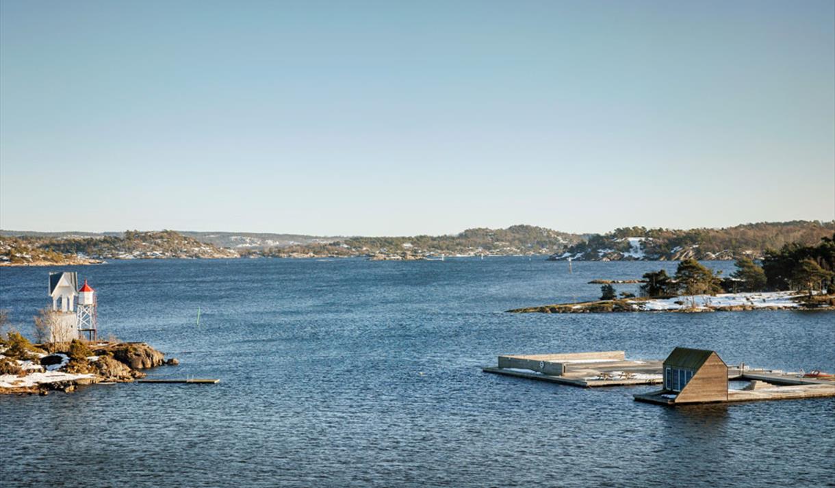Ved bryggeanlegget til Quality Hotel Skjærgården finner du en flytende badstue med plass til 10 personer. Badstua har garderobe og dusj, og du kan kjøle deg ned i sjøbadet utenfor. Uteområdene inkluderer stupebrett og terrasserte brygger for avslapning eller trening. Badstua er tilgjengelig både til fots fra Badeparken eller med båt, med mulighet for å fortøye båten ved brygga.
