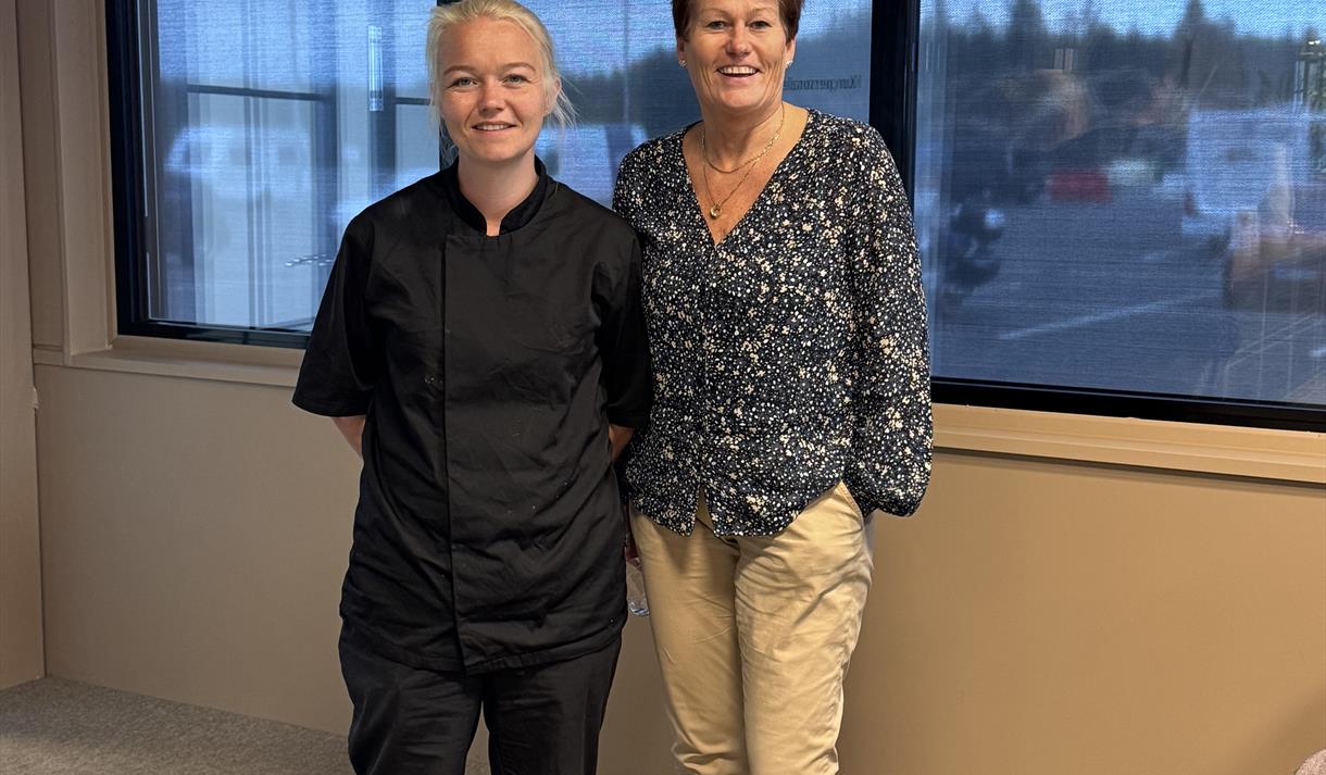 Menyen er lik som hos våre søsterkaféer, med alt fra norsk tradisjonsmat til ala carte og internasjonale favoritter. Enten du kommer innom for en god og mettende middag eller ønsker en pause fra kjøringen med en kopp kaffe og en deilig kake er du hjertelig velkommen!