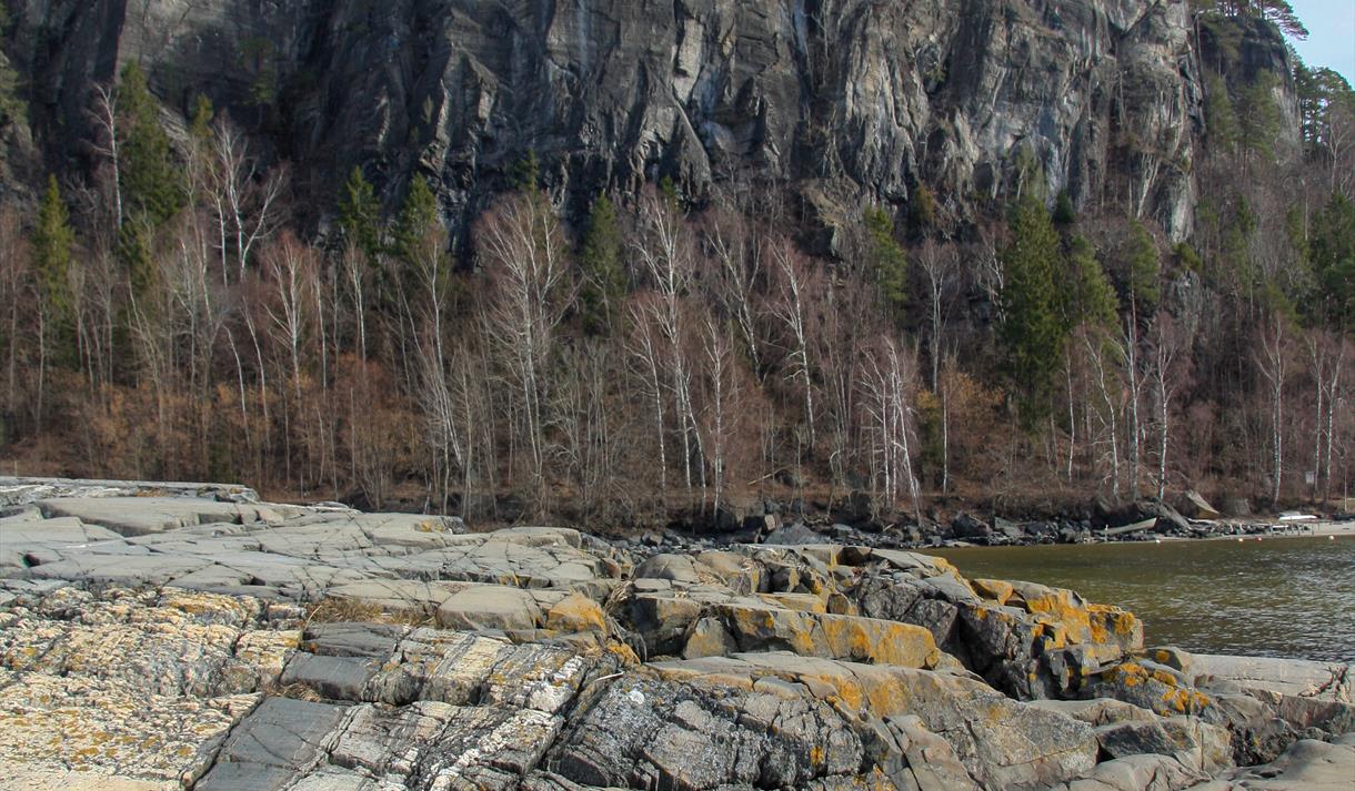 På Rognstranda i Bamble møtes to veldig forskjellige geologiske historier. På vestsiden av bukta kan glattskurte svaberg nytes! Her er det gamle grunnfjellet vakkert skulpturert gjennom de siste millioner år med istider. I selve berget viser mineraler og strukturer hvordan bergartene har vært gjennom store forandringer dypt nede i jordskorpa – det er bare å nyte og undres over de flotte mønstrene!