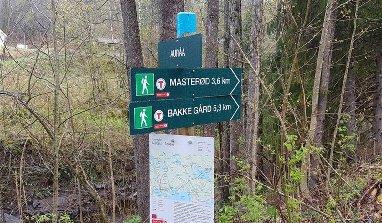 Med bil: 1. Start ved Bakke gård: Kjør sørover på Gamle Sørlandske hovedvei ca 1 km fra Dørdal. Ta av til høyre på Bakkeveien (skiltet) og følg denne veien 1,6 km til den stopper ved Bakke gård. Her er det en liten parkeringsplass og god skilting av stien. 2. Start ved Auråa: Auråa ligger ved E18. Det er en kontrollplass på begge sider av veien. På nordsiden av veien er det skiltet med parkering forbudt. Parkering foreslås gjort på sørsiden. Her er det bra muligheter for parkering, men pass på å parkere godt ut til siden for ikke å komme i konflikt ved eventuell bruk av kontrollplassen. Stien er merket herfra og går under E18 før den fortsetter