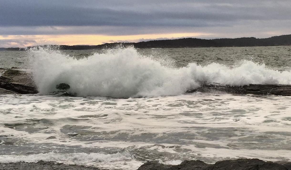 Man kan også oppleve Steinvika i skikkelig ruskevær! Når sørvesten feier innover Rognsfjorden, bølgene knuses mot klippene og bølgespruten står høyt til værs, da drar mange hit ned for å beskue dette stormfulle naturdramaet.