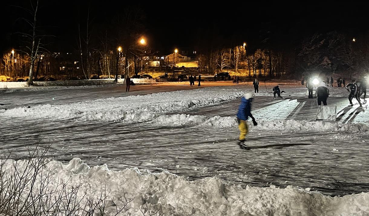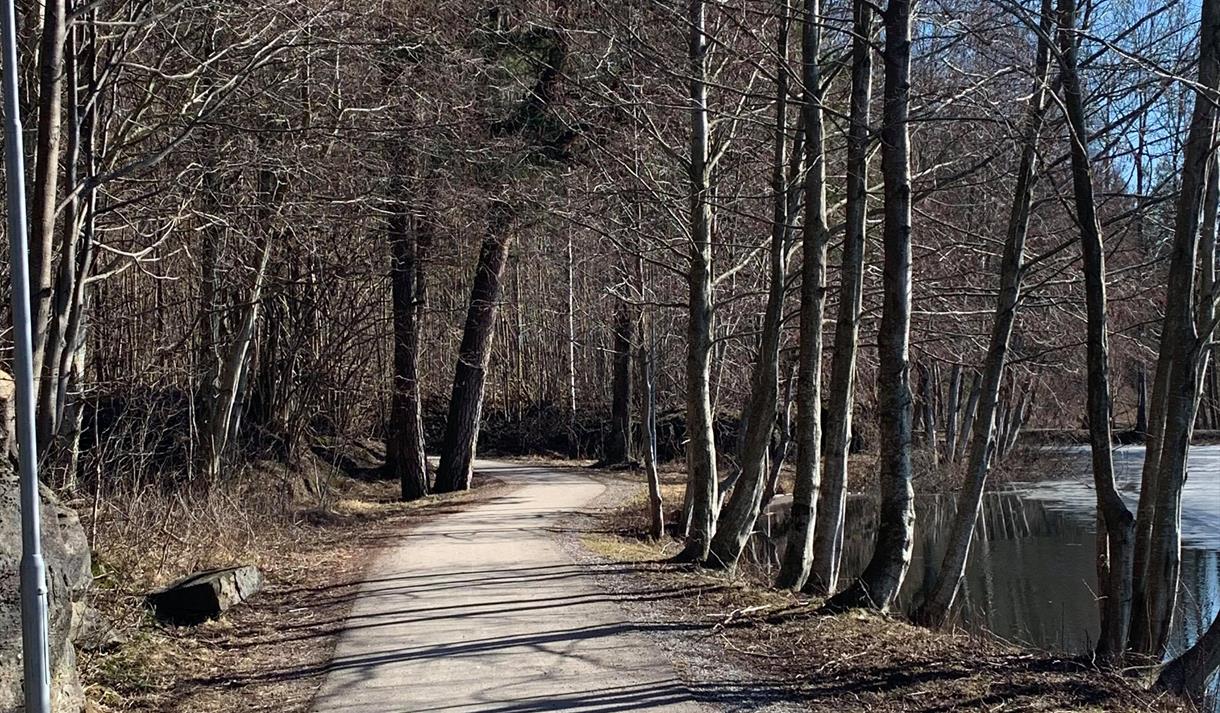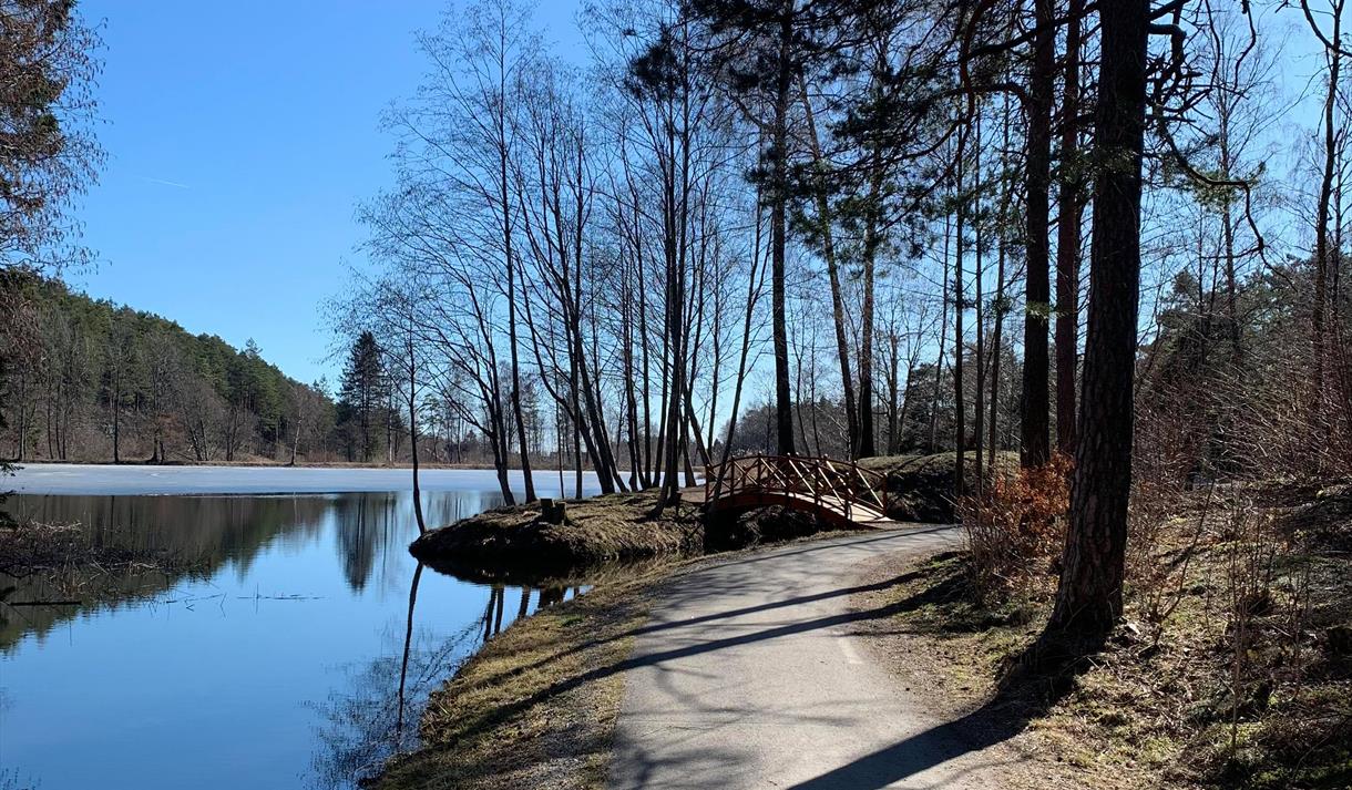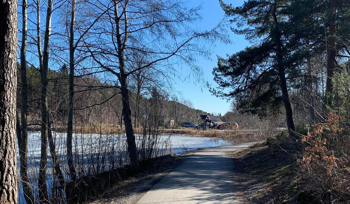 - Asfaltert rundløype rundt hele øvre dam