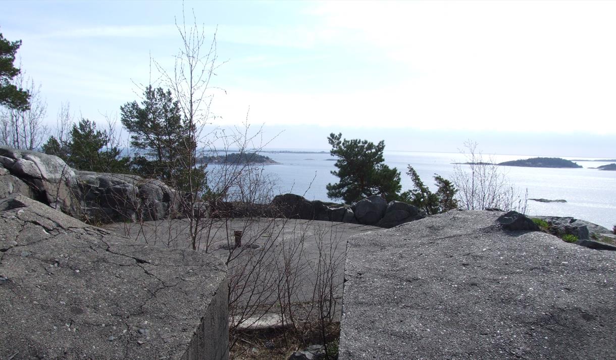 view of the sea from Tangen fort in Langesund Tangen Fort, BambleTangen Fort ligger ytterst på Langesundtangen, sør for Langesund by. Dette er et naturreservat og populært turområde med fantastisk utsikt over havet.