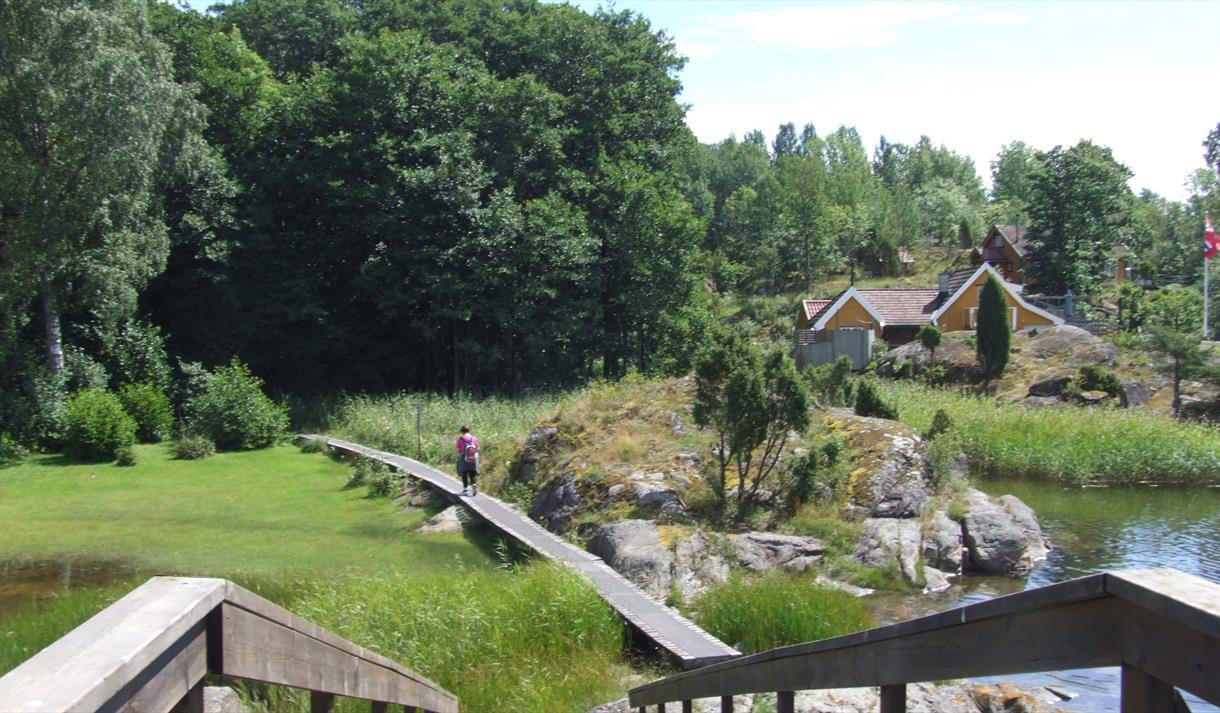 - Kryss Løvøysundet på gangbru over til Sandøya. Fortsett på merket sti nordover på myk skogbunn gjennom barskog i retning mot Dikkon. Spis varmt måltid eller iskrem på Dikkon kafè. Her serveres det også gratis kaffe.
