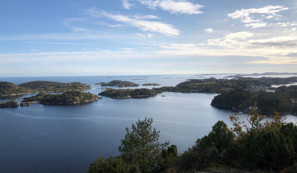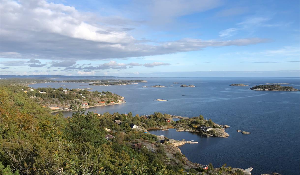 Når du kommer deg oppp til toppen er det flott utsikt mot skjærgården rundt Melbyfjorden og videre ut Bamblekysten fra Langesund til deler av øyene mot Kragerø. Kanskje det flotteste utsiktposten på hele Kystien. Våren 2017 satt Bamble Turlag opp en fotografisk tavle på utsiktspunktet med anmerkninger på steder man ser fra toppen.