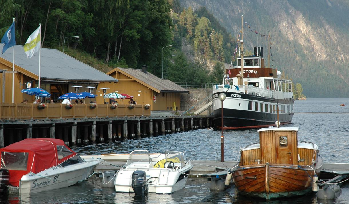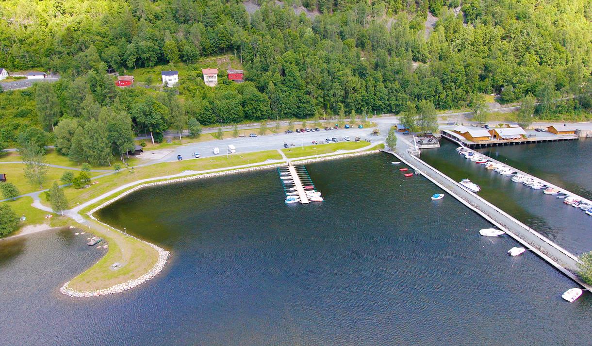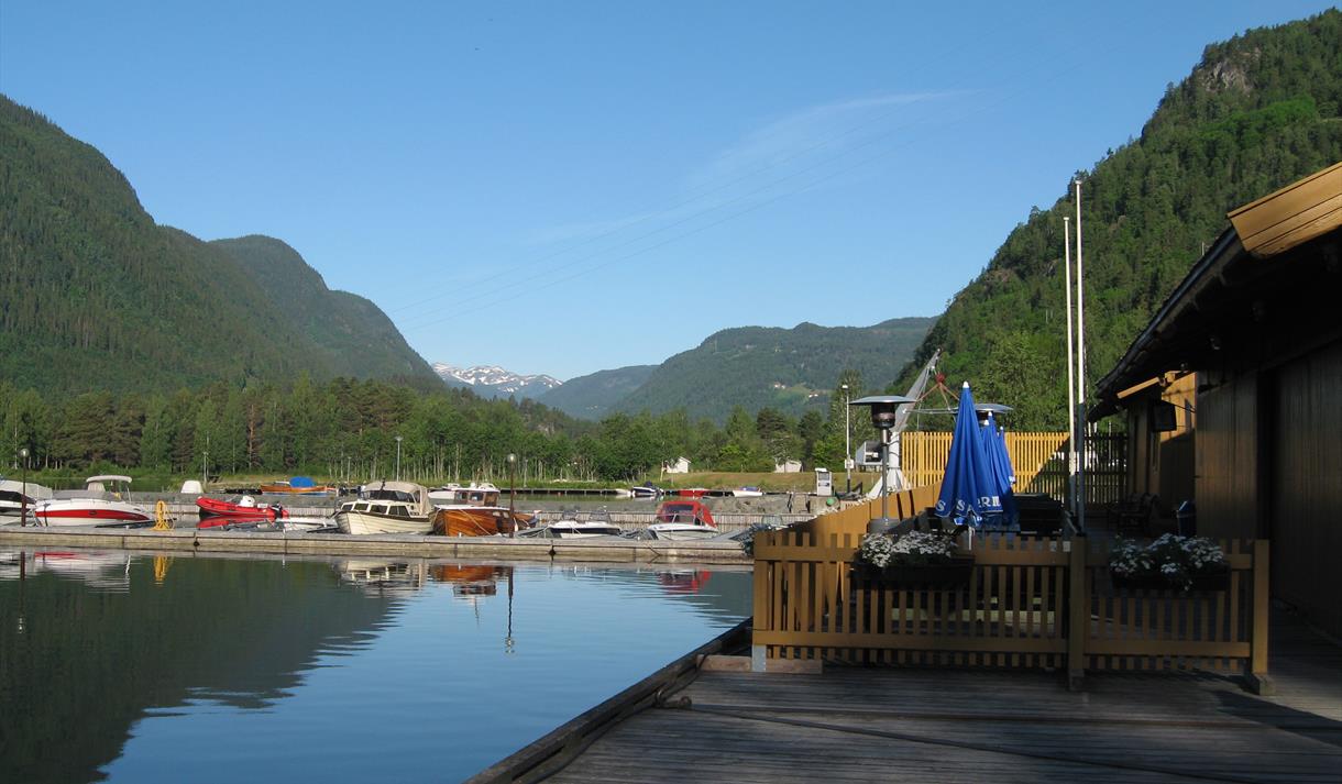 Idyllisk bryggje på sørsida av Bandak/Telemarkskanalen med overnattingstilbod for…