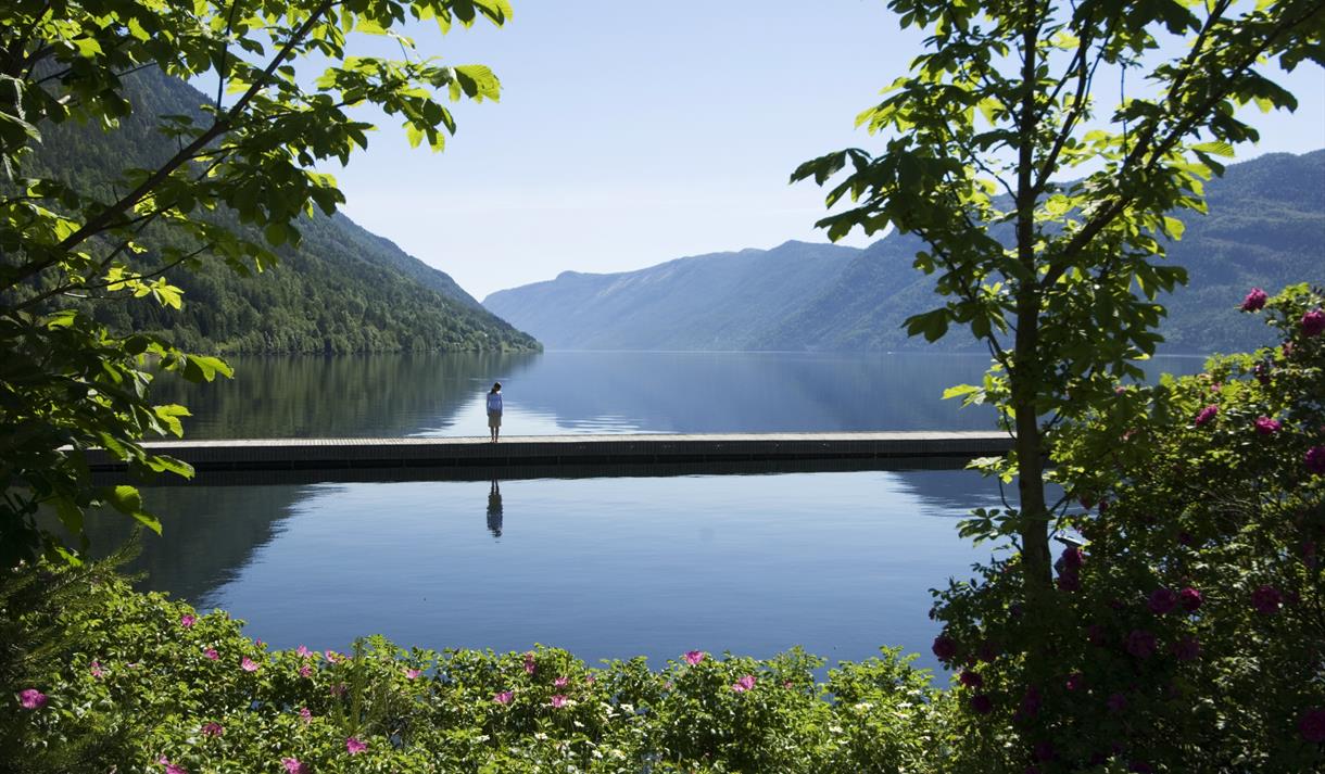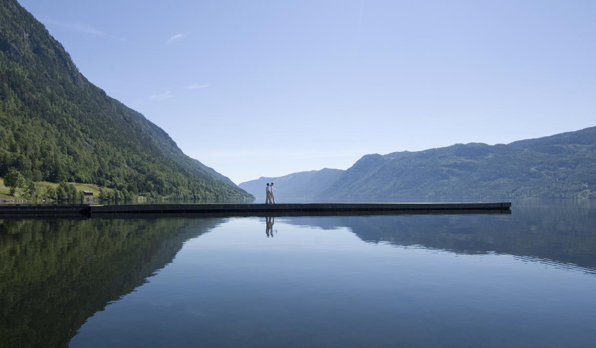 Idyllisk bryggje på sørsida av Bandak/Telemarkskanalen med overnattingstilbod for…