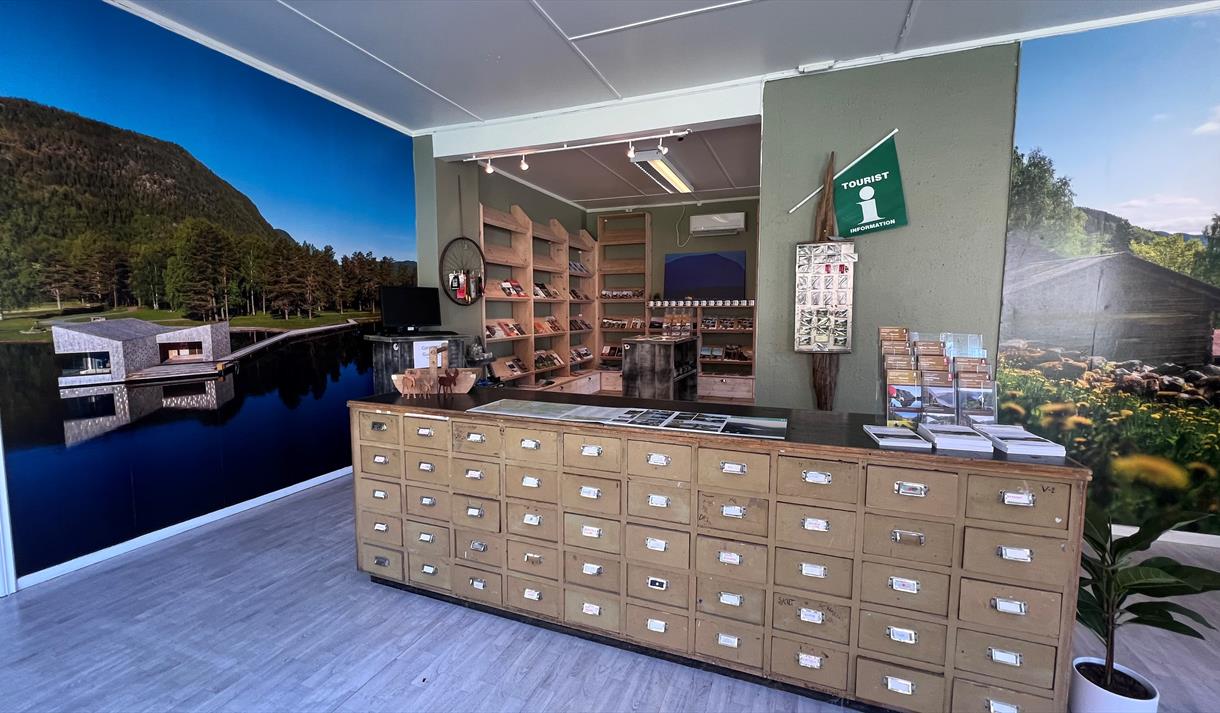 - Sal av suvenirar, fiskekort, postkort, frimerke, kart og bøkar.