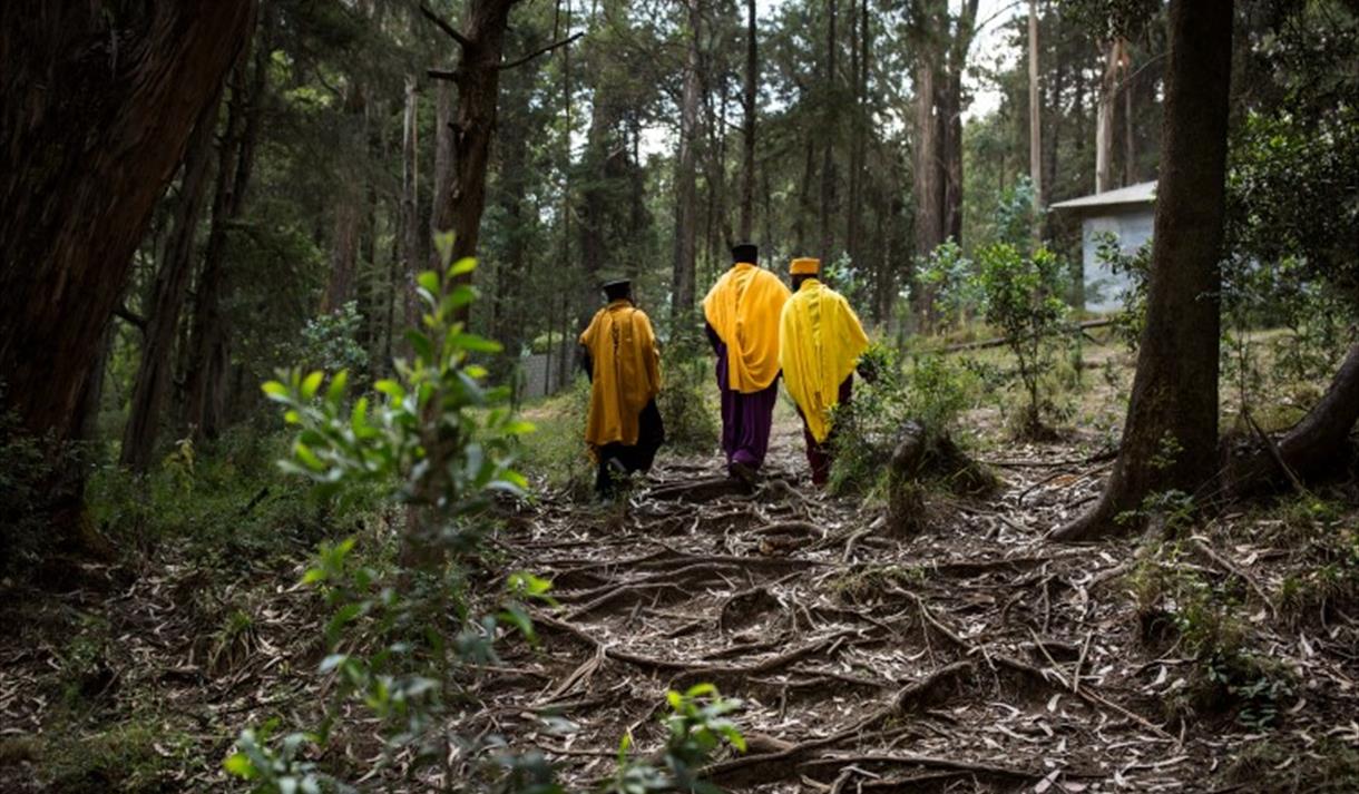 Utstillinga består av unike fotografi frå kyrkjeskogane, teke av den etiopiske fotografen Hilina Abebe.