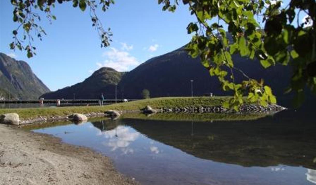 Idyllisk bryggje på sørsida av Bandak/Telemarkskanalen med overnattingstilbod for…