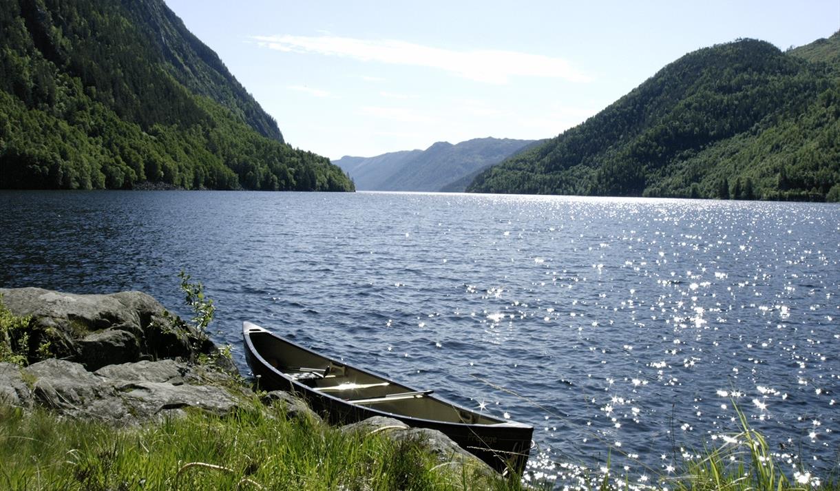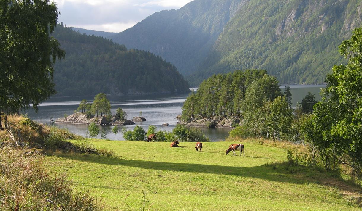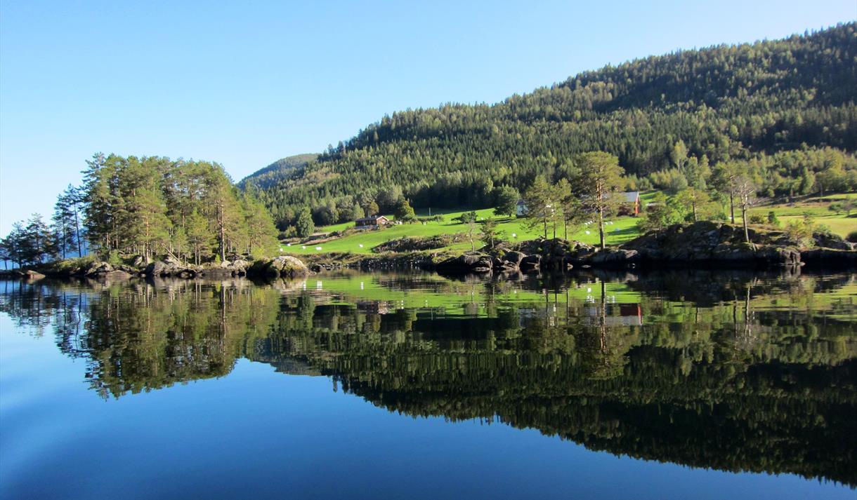 Idyllisk bryggje på sørsida av Bandak/Telemarkskanalen med overnattingstilbod for…