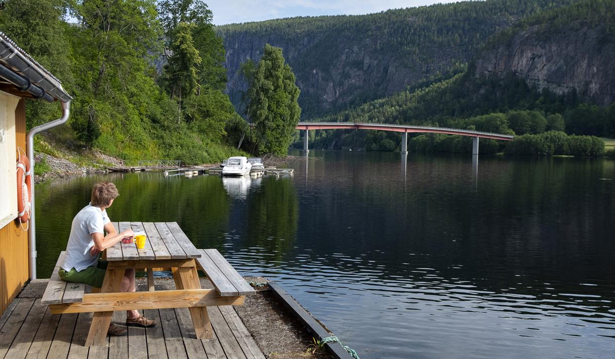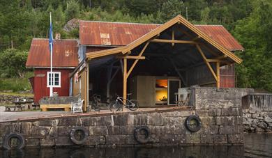 Idyllisk bryggje på sørsida av Bandak/Telemarkskanalen med overnattingstilbod for…