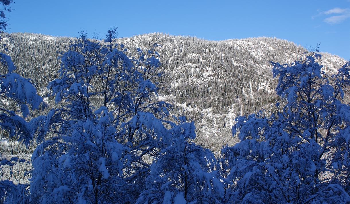 Hytta med 4 overnattingsplassar ligg i fjellsida opp mot Ravnejuv og har ein flott utsikt.