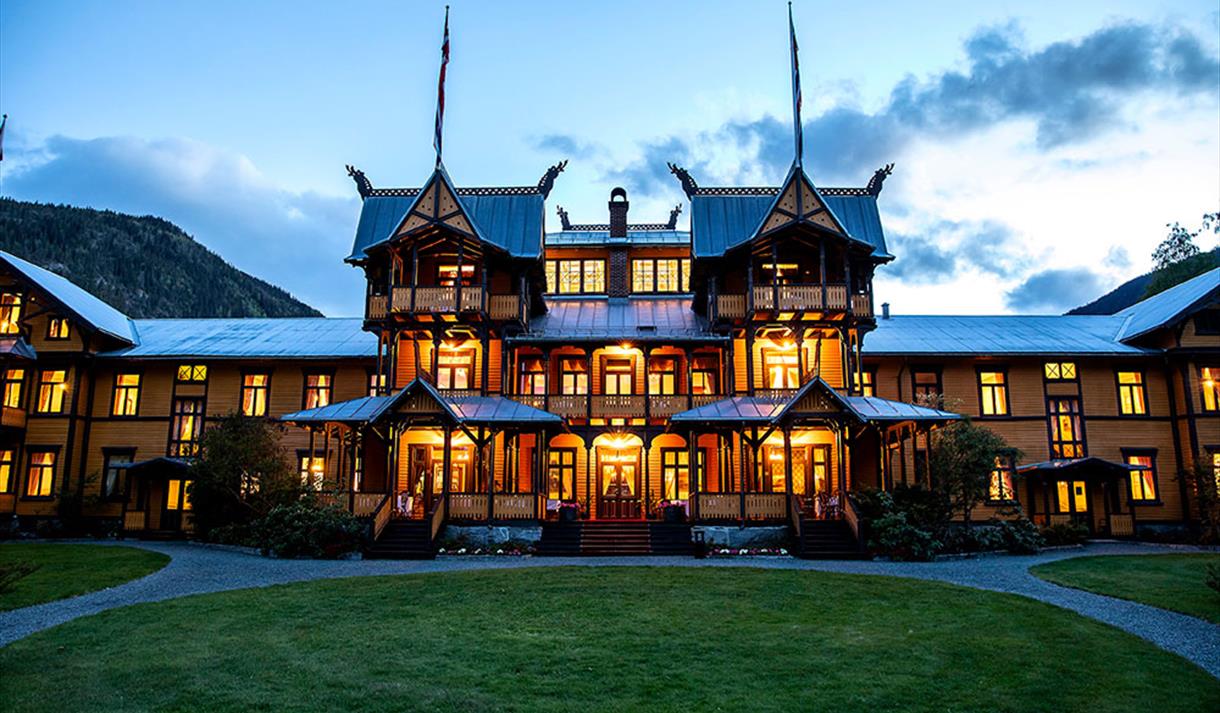 Fra første stund var hotellet et mektig anlegg, bygd i europeisk trearkitektur som var ført over i den norske dragestilen, og glanstiden tok til. «Et slott» som var omgitt av drager og spir, av mystikk og storhet. Hit kom såvel kongelige som lokale gjester. Hit kom det engelske aristokratiet. Hit kom Kong Oscar II av Norge og Sverige, kongen av Siam, keiser Wilhelm av Tyskland og kong Leopold av Belgia. Hit kom kong Haakon VII og dronning Maud med kronprins Olav. Hit kom prominente gjester frå heile Europa. De stelte til ball og danset vals. I et halvt århundre danset de seg gjennom gleder og sorger, gjennom krig og fred.