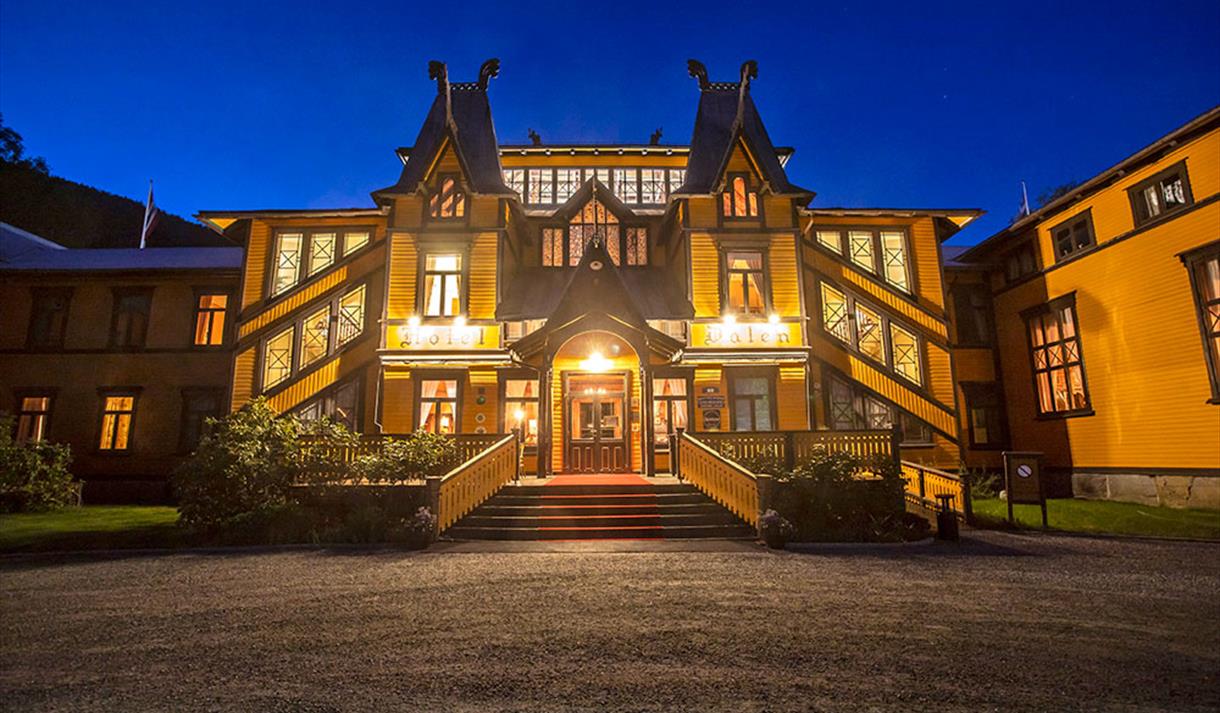 Turiststrømmen til Dalen var stor allerede på 1800-tallet på grunn av Telemarkskanalen, men Dalen manglet et luksushotell for de rike og prominente gjestene. Med inspirasjon fra blant annet stavkirker og vikingtiden ble hotellet oppført i 1894. Hotellet ble kjent over hele Europa og det engelske aristokratiet kom hit. Kong Oscar II var gjest her, det var også keiser Wilhelm av Tyskland og kong Leopold II av Belgia. Hit kom også kong Haakon VII og dronning Maud med daværende kronprins Olav.