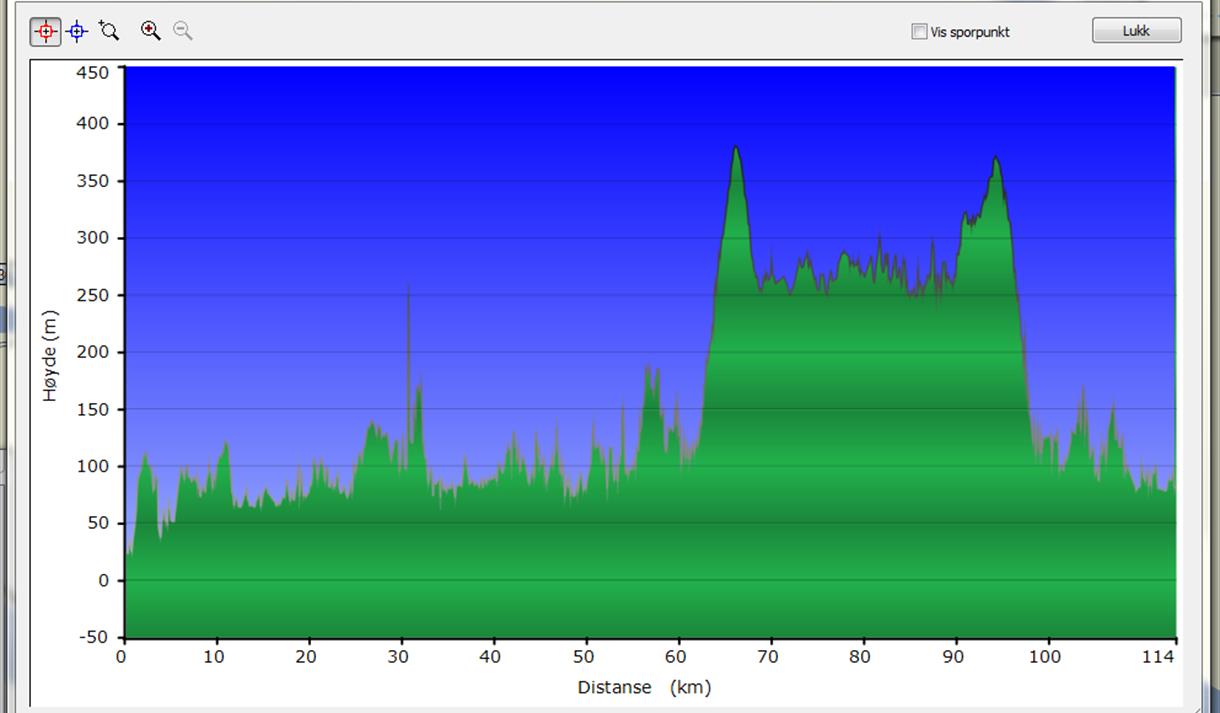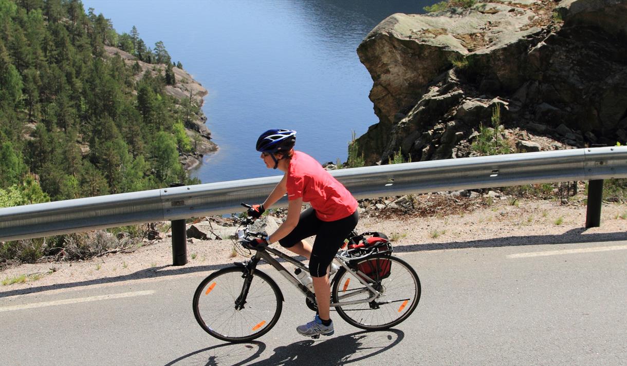 Vanskelighetsgrad: Veien er stedvis kupert, og turen egner seg best for sykkelvante personer.