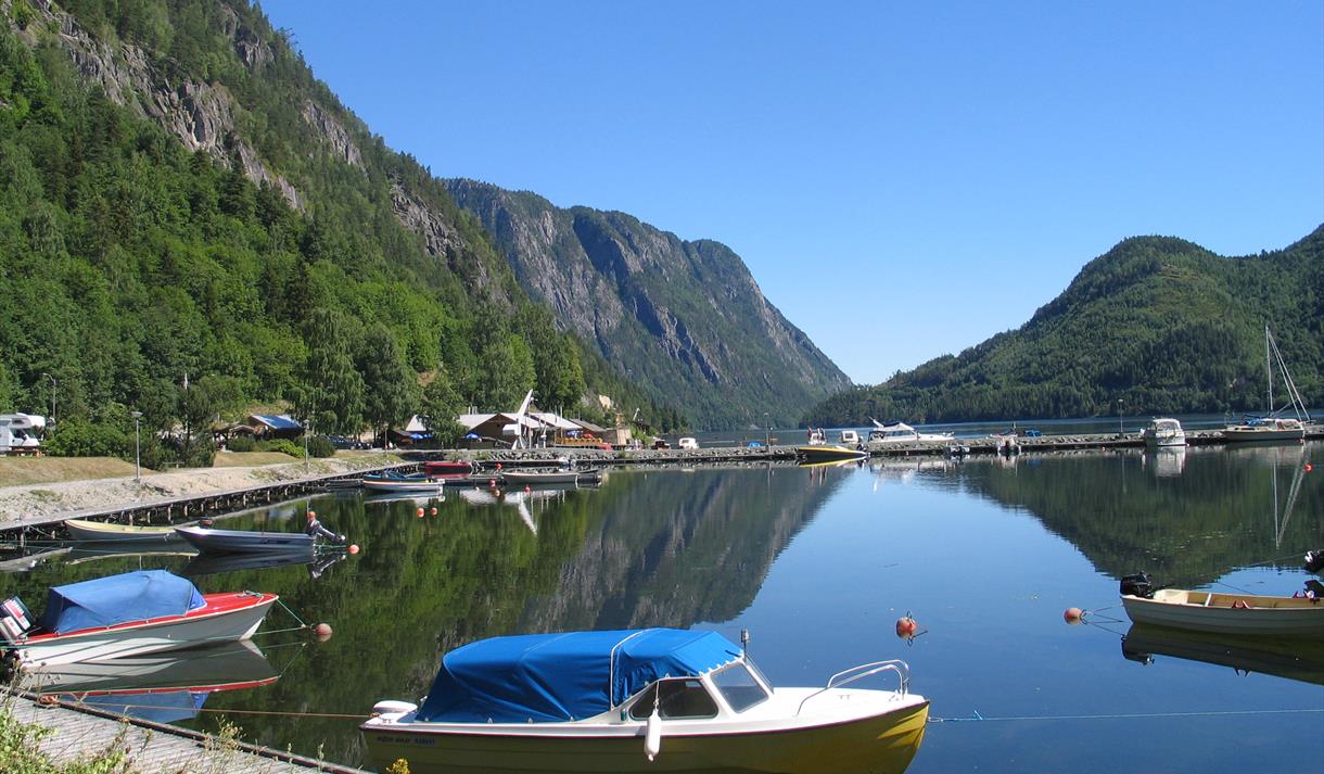 Idyllisk bryggje på sørsida av Bandak/Telemarkskanalen med overnattingstilbod for…