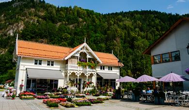 Dalen Hotel, eventyrhotellet fra 1894, i overdådig, romantisk stil med dragehoder, tårn…