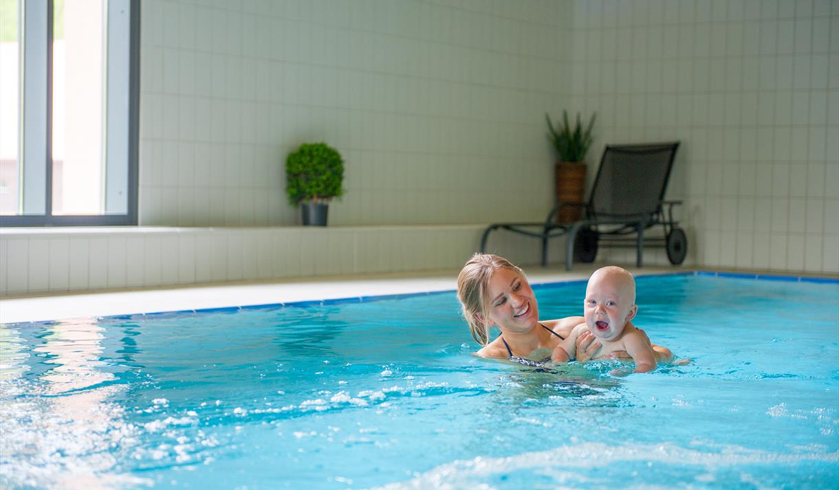 Eit basseng på 12,5 meter med temperatur på 28 grader og eit terapibad med 34 grader. I terapibadet er det babybasseng, sitteavdeling med bobler for avslapping og kaldkulp.