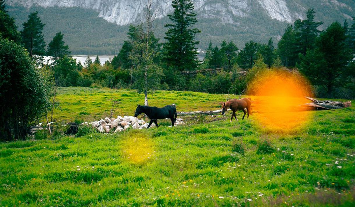 Eierne, Anette Forsdal Halvorsen og Stein Lund Halvorsen, har gjort gården til et sjarmerende gårdstun med gamle tømmerhus og en fantastisk utsikt over Fyresdals mektige fjell og vann.