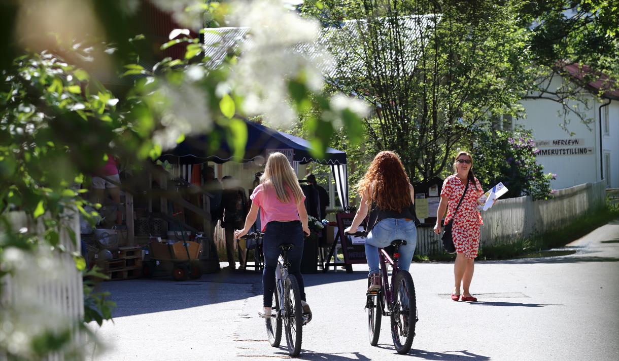 Tak fyrste veg til venstre inn i skogen, fylg denne forbi Granheim og vidare langs elva til Haugfoss. Herifrå må du sykle over brua, tak til høgre og fylg den gamle ferdselsvegen gjennom skogen fram til Heggland Daglegvare.