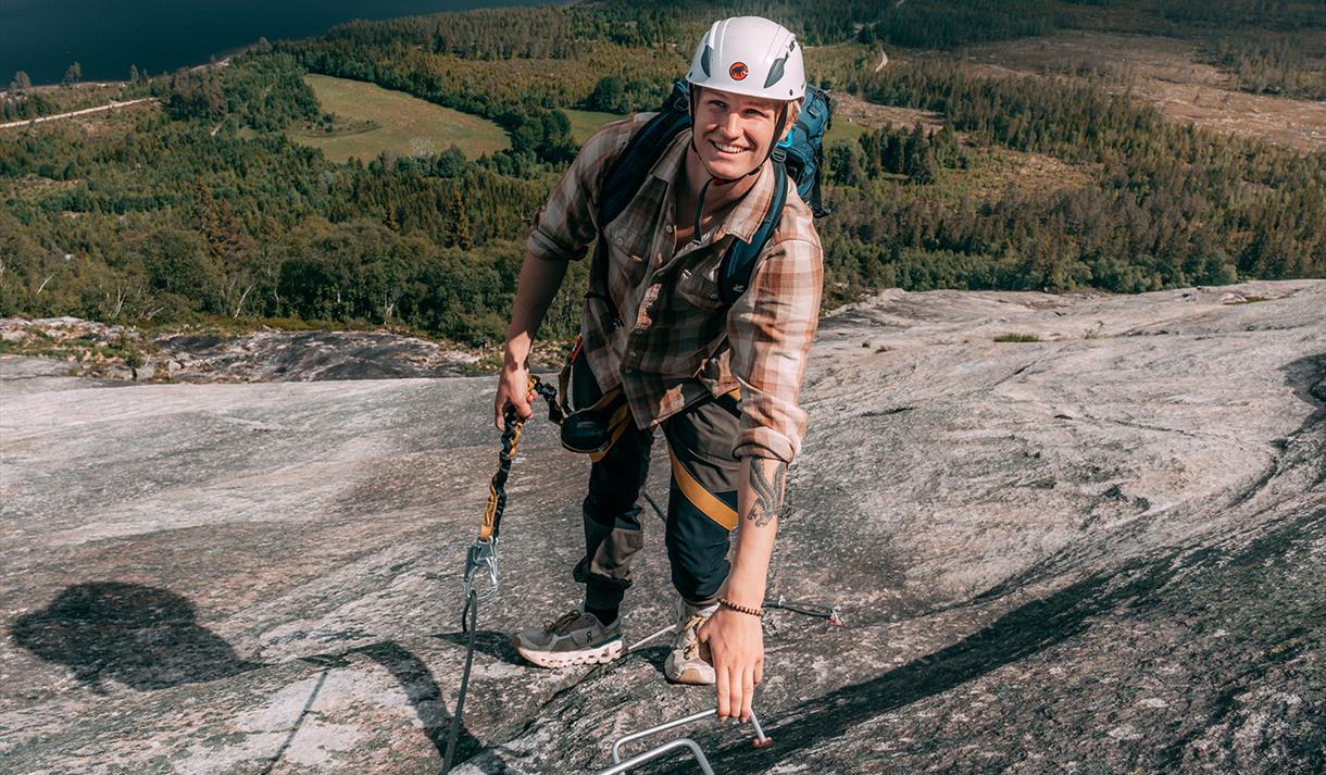Via Ferrata er en klatrerute i bratte fjellvegger med faste sikringsmidler som stålvaier, bøyler, stiger og broer.