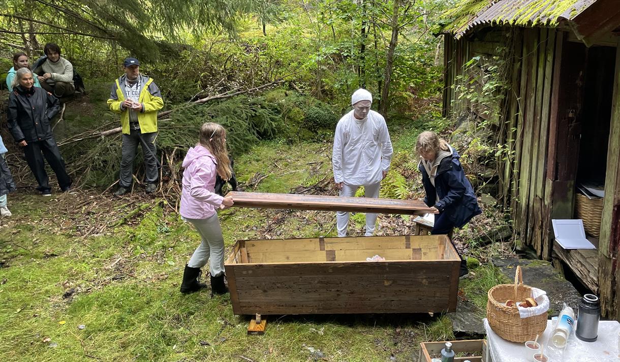 Vandringen går via Øvre Saltbutangen til Plasshytta, hvor vi får et glimt av Pesta i levende live (!), før vi overværer hennes likvake i Plasshytta. Det hele ganske spektakulært. Så går alle via Helleren til krysset Skåtøyveien-Vennevikveien hvor folk kan gå rett til fergen eller videre til Skåtøy Kafè for å nyte noe å spise eller drikke etter den flotte vandringen.