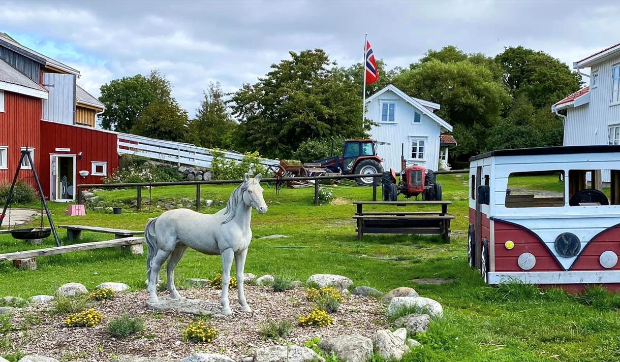 Ute i havgapet ligger moreneøya Jomfruland. Her er det aktive bønder som holder på med mye spennende. Ta en tur til den flotte besøksgården Gundersen, hvor du kan hilse på mange forskjellige dyr som kaniner, marsvin, ullgris, minigris, lama, emu, påfugl, høner, hester, vak, mini esel, sauer, geiter og ponnier mm. Noen av dyrene kan du inn å klappe og hilse på og evt ta en runde på hesteryggen. (kr 50,- ekstra for ridetur). Her kan du også klatre og hoppe i høyet, huske, opp i fyret, hilse på trollet, leke og nyte medbrakt mat og drikke.