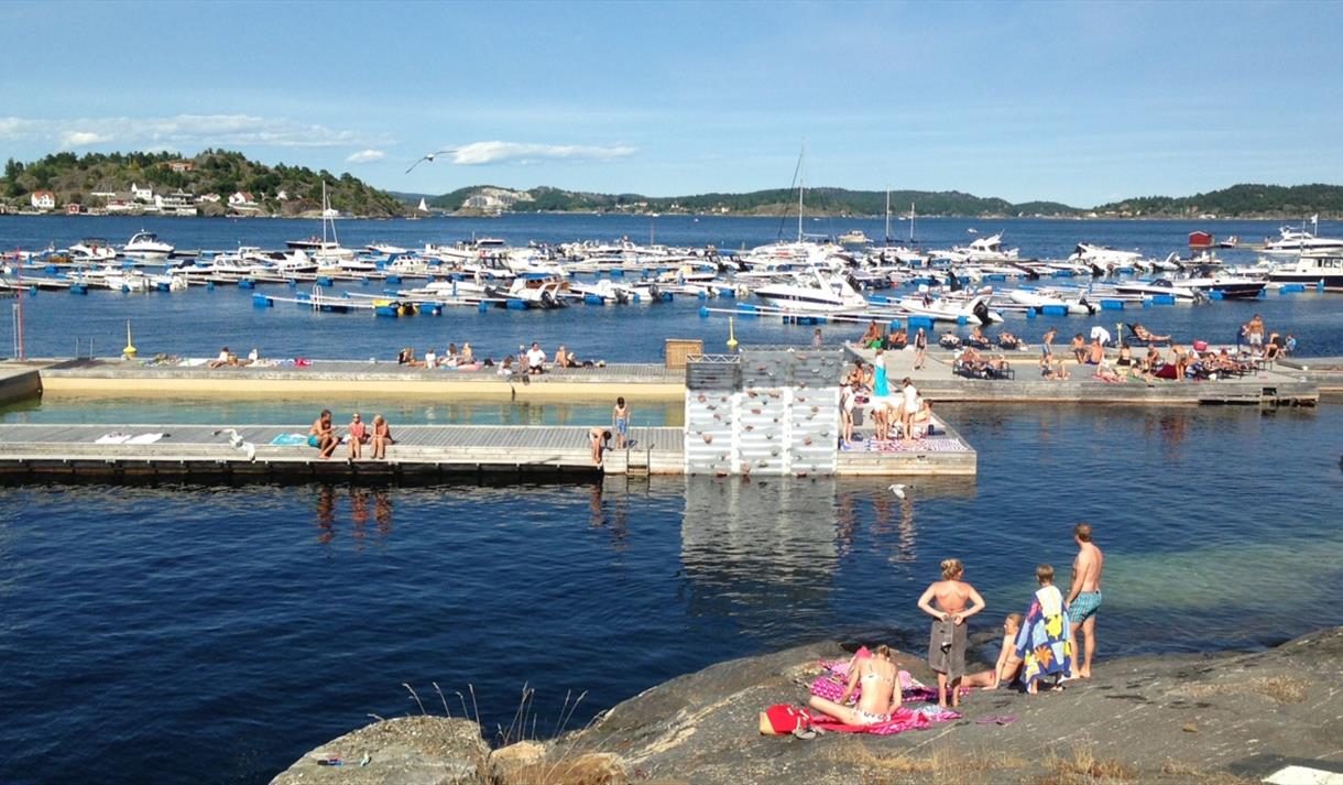 Vil du nyte den deilige norske sommeren i et område med flotte bademuligheter og et hav av tilbud og fasiliteter er Kragerø Resort Beach Club stedet for deg. Her har du alt du trenger, fra du kommer til du drar. Alt du trenger å ta med deg er godt humør og forventningene om en deilig dag med bading og kos. Solstoler og solsenger er tilgjengelige for utlån og for å kjøle deg ned etter du har nytt solen kan du benytte deg av stedets fantastiske bademuligheter. Her finnes det stupetårn i to høyder og klatrevegg som henger over vannet for de litt mer vågale. Det deilige saltvannet er lett tilgjengelig fra det flotte anlegget og foretrekker du heller et avgrenset område uten fare for maneter o.l., men samtidig det samme forfriskende saltvannet kan du ta turen uti stedets saltvannsbasseng. Er du av typen som liker å være i aktivitet kan du benytte deg av den flotte strandvolleyballbanen, eller kanskje du heller vil leie en kajakk og ta deg en padletur i den fantastiske skjærgården. For de minste finnes det en liten lekeplass og det er også mulighet for en runde eller to med bordtennis for de som skulle ønske det. Etter en dag med aktiviteter, soling og bading kan du dusje av deg saltvannet i en av utedusjene før du slår deg ned blant palmene på den store terrassen og nyter et deilig måltid og noe godt i glasset. Enten det kun frister med en liten is og noe kaldt å drikke eller et godt og deilig måltid har Kragerø Resort Beach Club alt du måtte trenge for å nyte en fantastisk sommerdag.