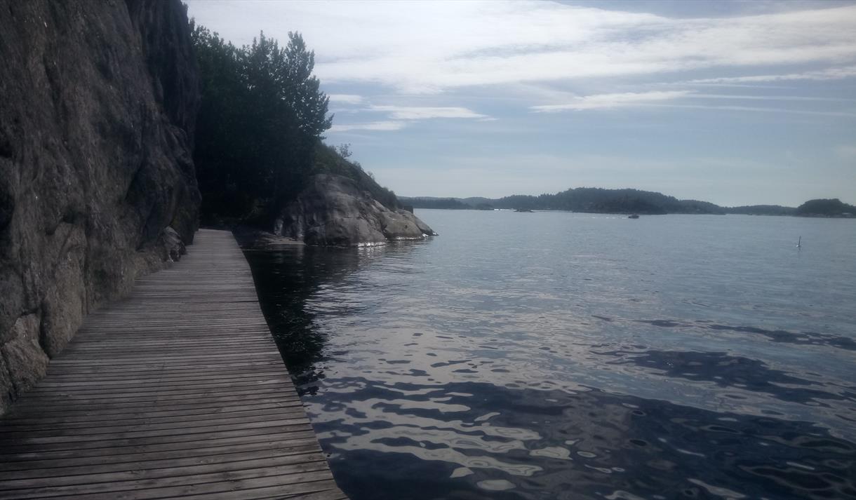 Via Sjøbadet kan du komme deg opp til utsiktspunktet Veten som byr på nydelig panoramautsikt over sentrum og Kragerøs vakre skjærgård. På veien opp dit ligger det også noen Jettegryter!
