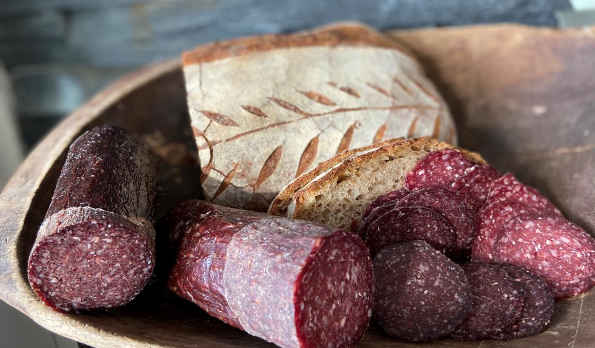 Spekepølsene våre er laga av om lag 80 prosent reint hjortekjøt, i motsetnad til dei fleste andre viltpølser som er blanda ut med anna kjøt. Me likar godt den reine, gode viltsmaken, og veit at kundane våre set pris på kvalitet.