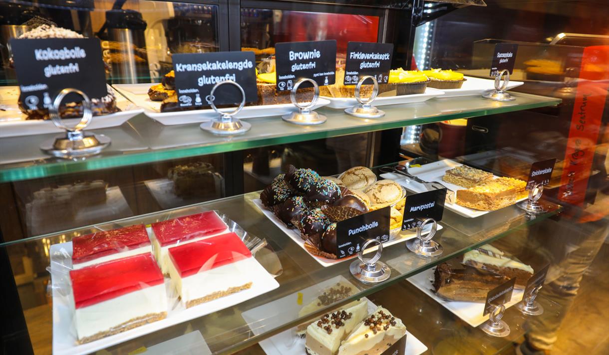 Her får du nydelige bakevarer, kaker, ferskt brød i mange varianter, deilig påsmurt av ulike slag, kaffe, te og kakao.