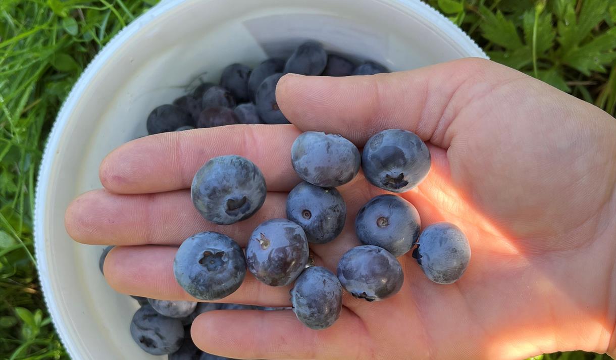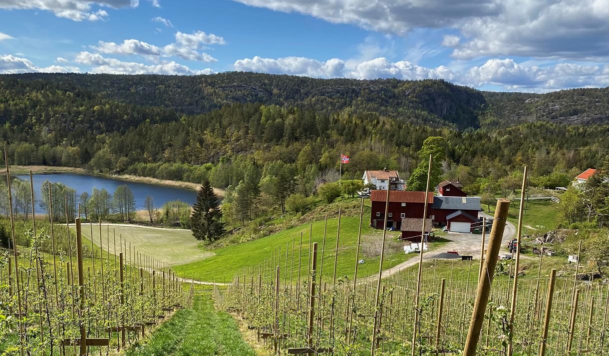 Gården er en eplegård, men det er også produksjon av hageblåbær som det drives selvplukk på i august-september måned.