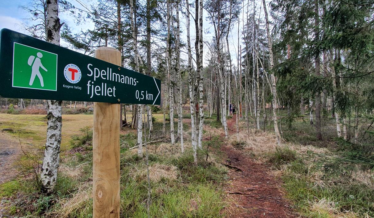 For å komme til Spellmannsfjellet går du forbi Turisthytta, og tar så av til høyre ved 'stallene'. Også her er det godt skiltet. Deretter følger du skiltet sti helt frem til Spellmannsfjellet. Starter du ved Turisthytta tar turen ca 20-30 minutter. Barn helt ned i 3-4 års alder vil kunne klare denne turen greit, selv om det er noen bratte partier.