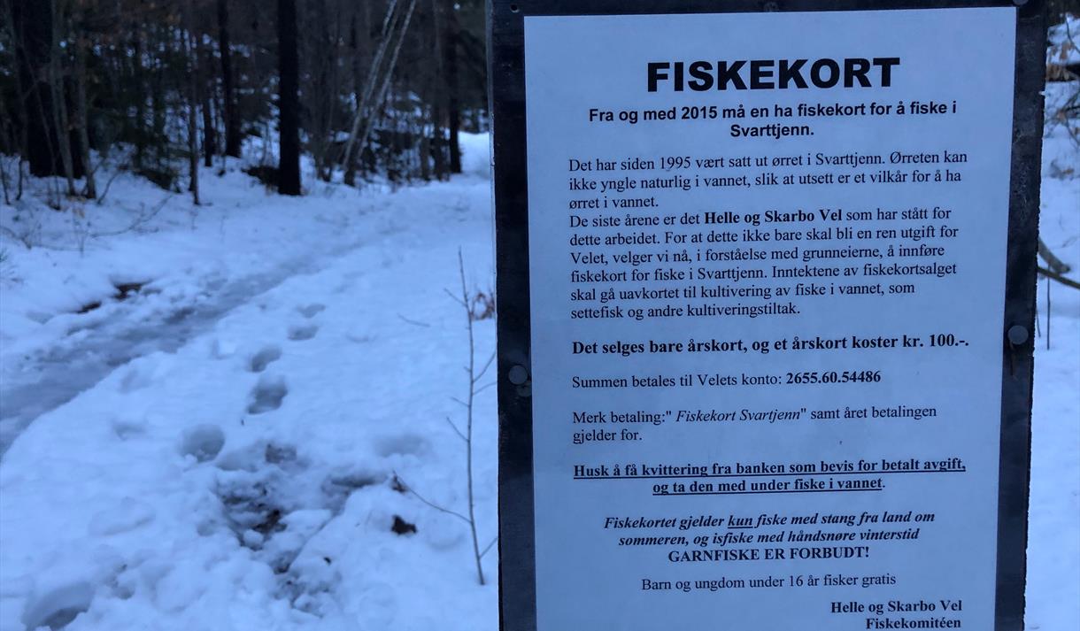 I Svarttjenn er det gode fiskemuligheter da velforeningen kultiverer fiskebestanden og setter ut ørret nesten hvert år. Løs et fiskekort og prøv fiskelykken. Husk å se etter skiltet på veien opp til Svarttjenn fra Skarbo skole for mer info om pris m.m.