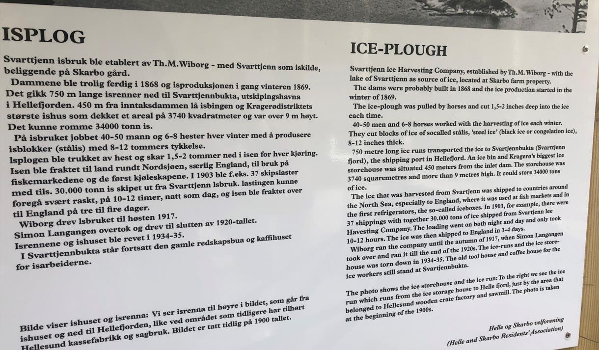 Ta turen opp til Svarttjenn på Helle og bli begeistret av den interessante historien om «Svarttjenn isbruk». Turen egner seg for hele familien og er en fin opplevelse både vår, sommer, høst og vinter.