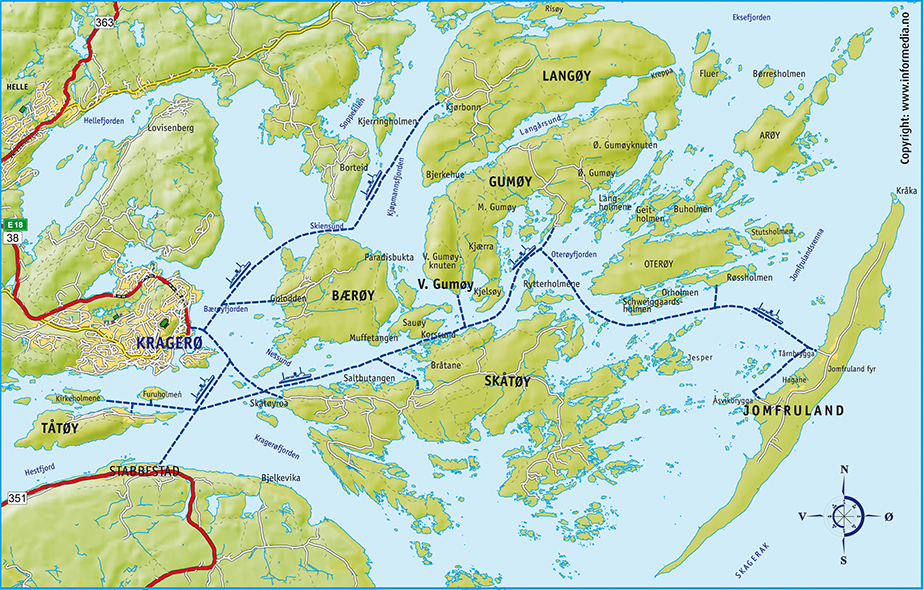 Du er her: Praktisk informasjon Praktisk info Kart over Kragerø