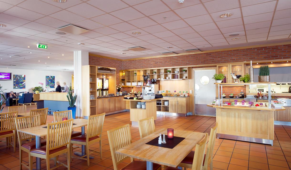 Skien har mange restauranter og barer å velge mellom – men vi tilbyr også våre gjester en inkludert kveldsmat, hver kveld fra kl.18.00-21.00. Dette betyr at du kan slappe av og fokusere på den større sammenhengen. Når du har spist middag kan du krølle deg sammen foran peisen og nyte hotellets elegante stemning.