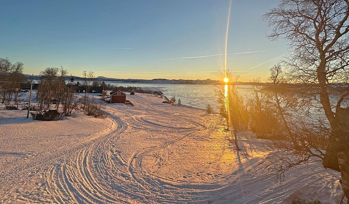 Om vinteren kan du enten gå på ski (2,5 km) over isen eller bestille snøscooter-taxi (H.Hovden AS) – en flott tur på rundt 15 minutter gjennom vinterlandskapet.