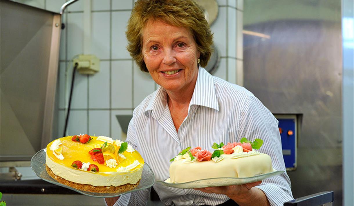 Kontakt Aarnes Kafeteria for mer informasjon, eller besøk websiden for å se alt av menyer, snitter, koldtbord, fristende desserter og hjemmebakte kaker.