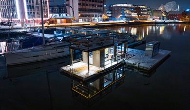 Nå kan du leie badstuebåt i Skien! Rett utenfor Skien sentrum, rett ved Bakkestranda, ligger badstubåten fra Damp med navnet LEO.