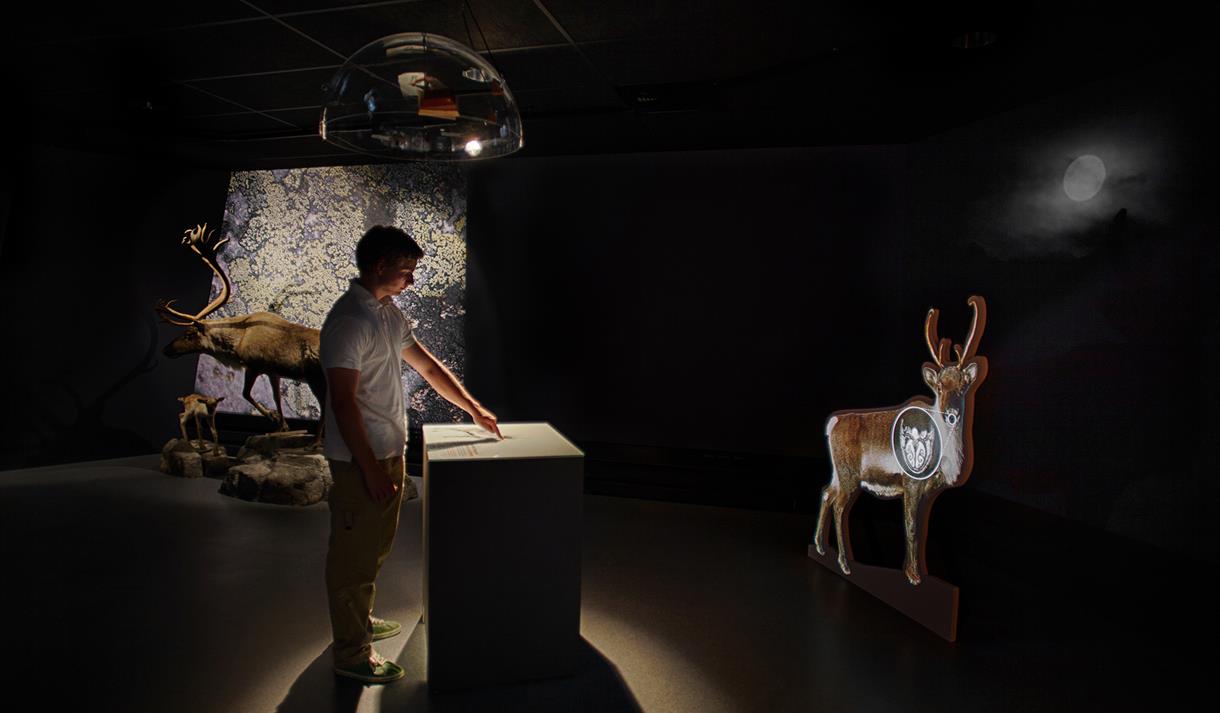 Dykk ned i historien og biologien til villreinen gjennom vår interaktive utstilling, tilgjengelig på 10 språk.