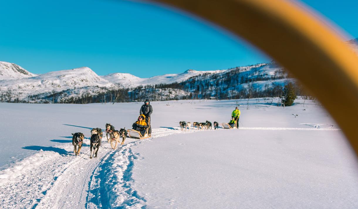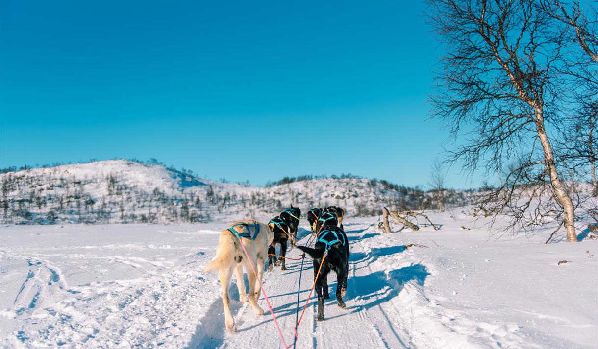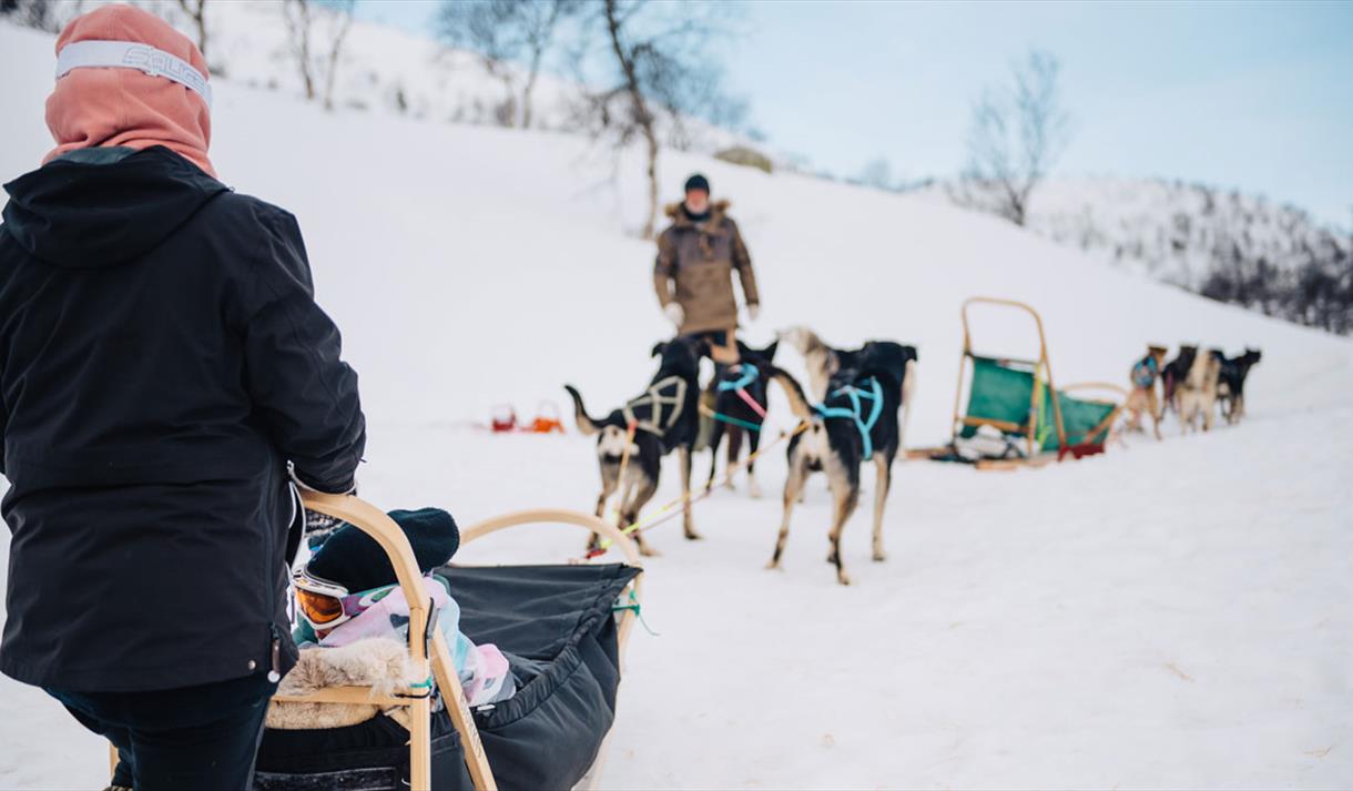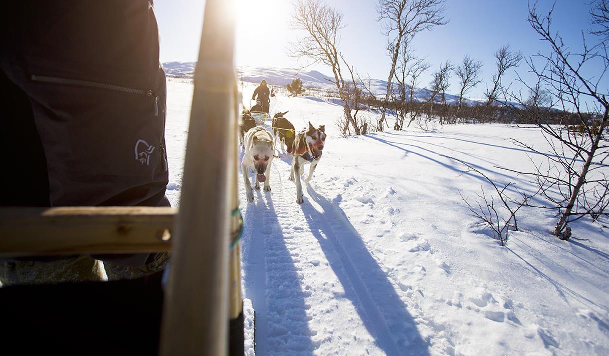 Du trenger ingen erfaring for å bli med på hundekjøring hos oss. Våre profesjonelle guider gir deg grundig opplæring før turen starter. Hundespannet følger trygt etter guiden som kjører først, slik at du kan nyte følelsen av å gli lydløst gjennom landskapet, kun akkompagnert av vinden og ivrige poter mot snøen.