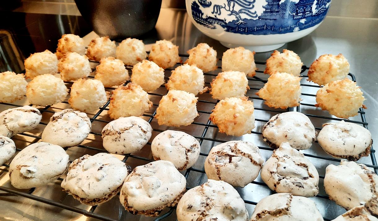 Ingefærkjeks, havrekjeks og mandelkjeks med egg frå eigne høner.