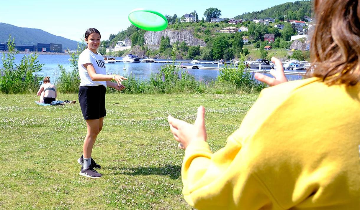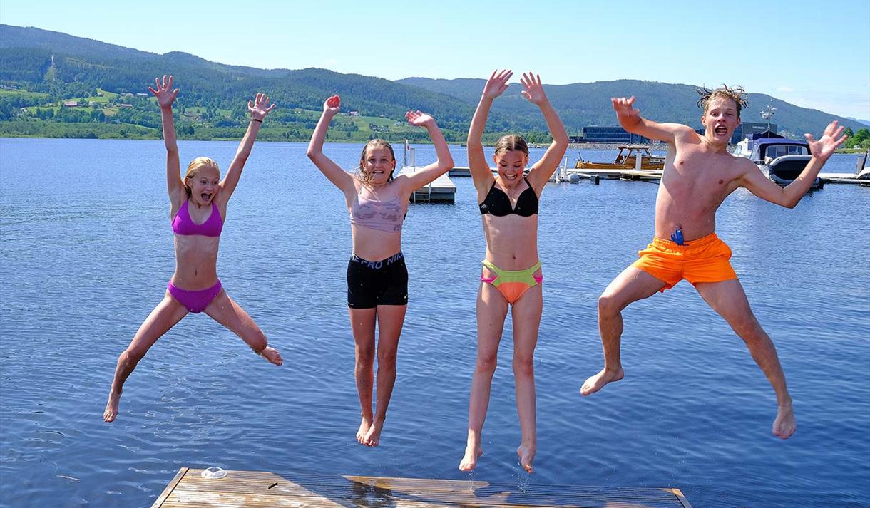 Bystranda er en populær og barnevennlig badeplass som ligger idyllisk til ved Heddalsvannet, kun et par minutters gange fra Notodden sentrum. Her finner du en flott sandstrand og en stor trampoline ute i vannet – perfekt for bading, lek og sommerkos for hele familien.