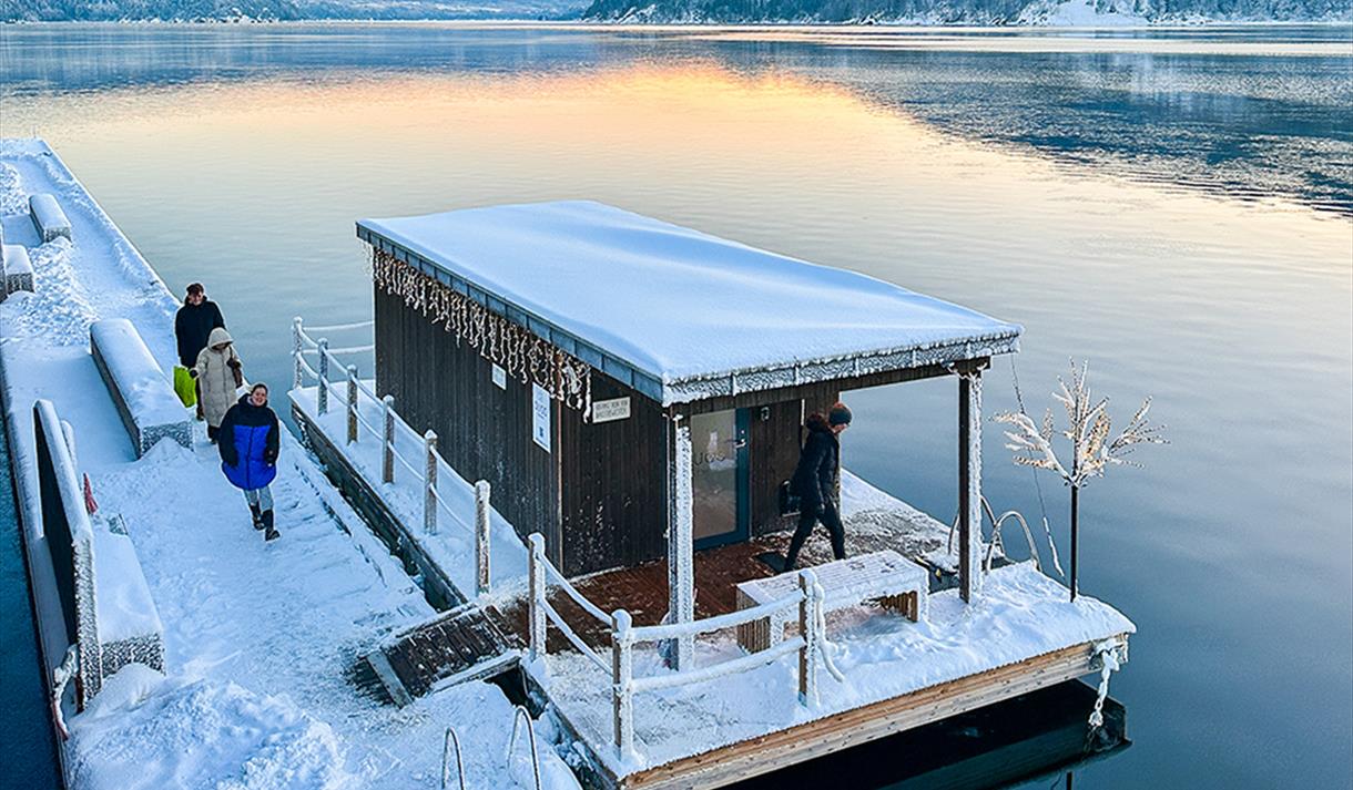 Avslutt badstueopplevelsen gjerne med et forfriskende bad i Heddalsvatnet.