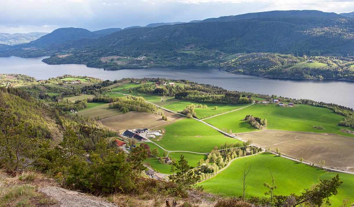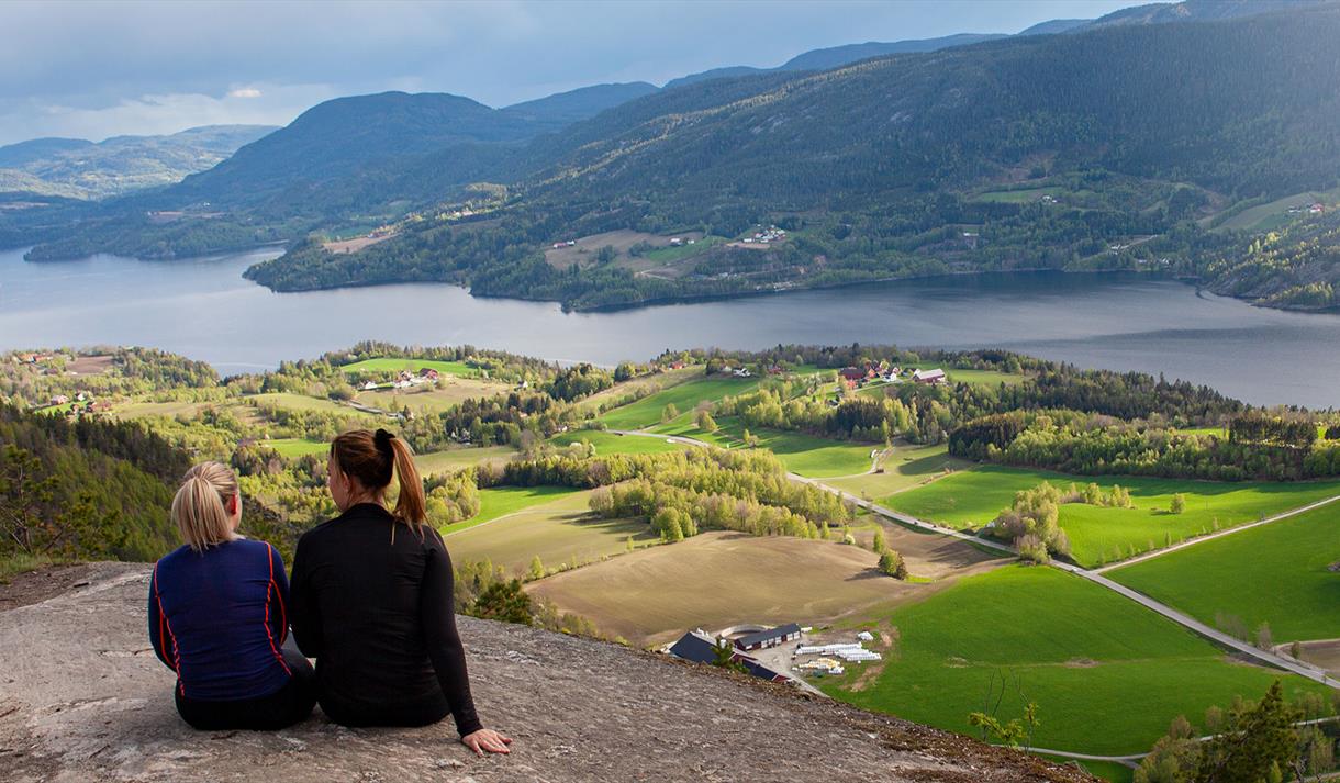 Fra toppen får du panoramautsikt over Heddalsvannet, Notodden by og Lifjell i det fjerne. På dager med lavtliggende tåke ligger toppen rett over skylaget – og du kan føle at du går på skyer (men hold deg godt unna kanten – det er flere hundre meter rett ned!).