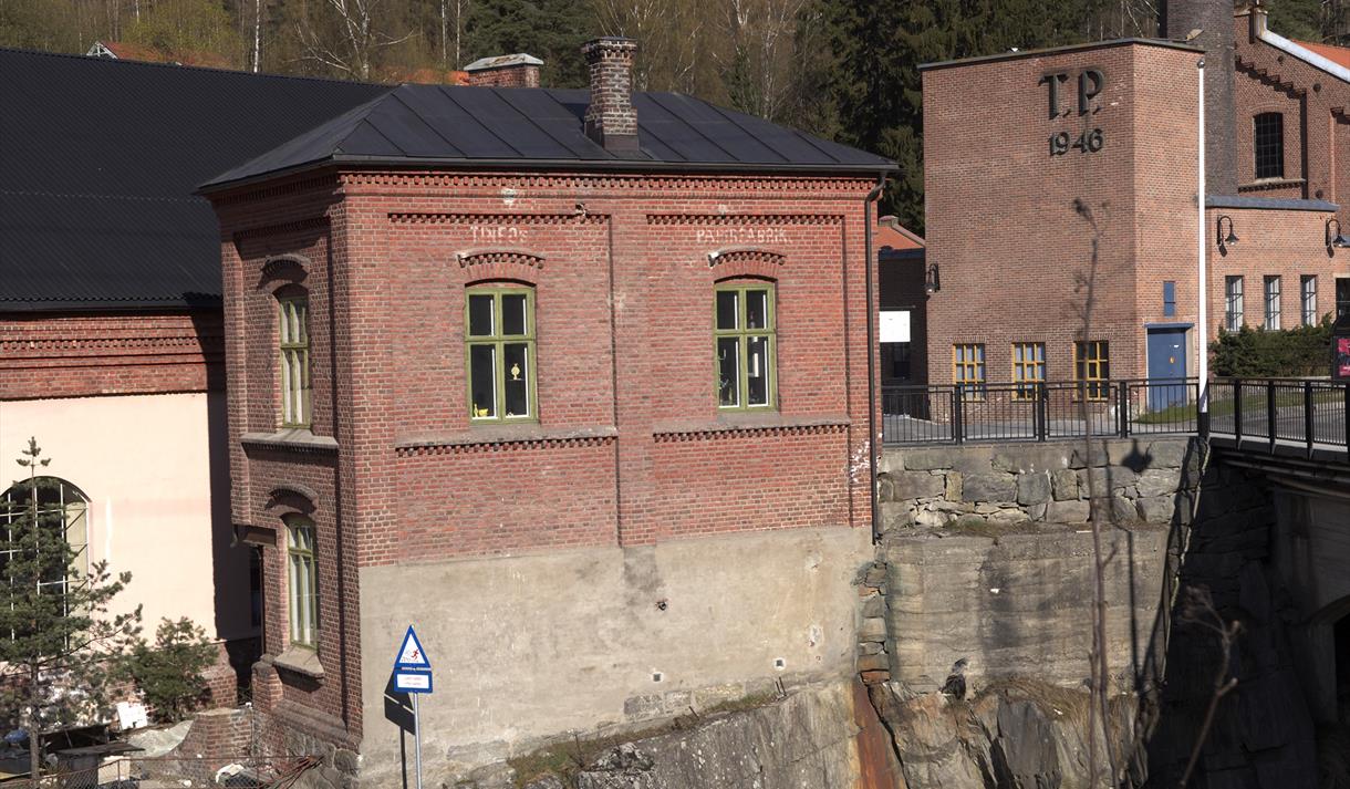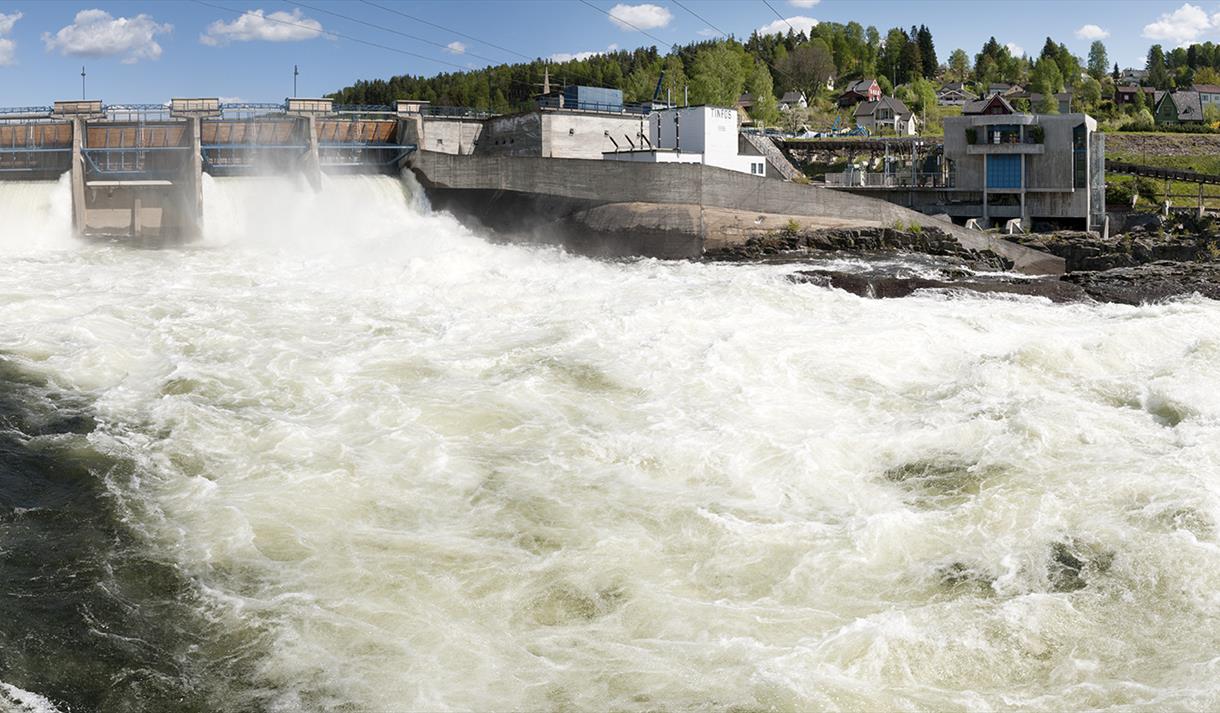 Oppe ved Tinnefossen har fossekraften vært brukt til industri siden andre halvdel av 1800-tallet. Nå ligger området som et industriminne med mange flotte, gamle industribygg. Flere av bygningene har detaljer som «bare» er til pynt: tårna i hjørnene på kraftstasjonen Tinfos 2, som blir kalt for «Borgen», eller lyna som pynter sørveggen av gamle Tinfos 1.