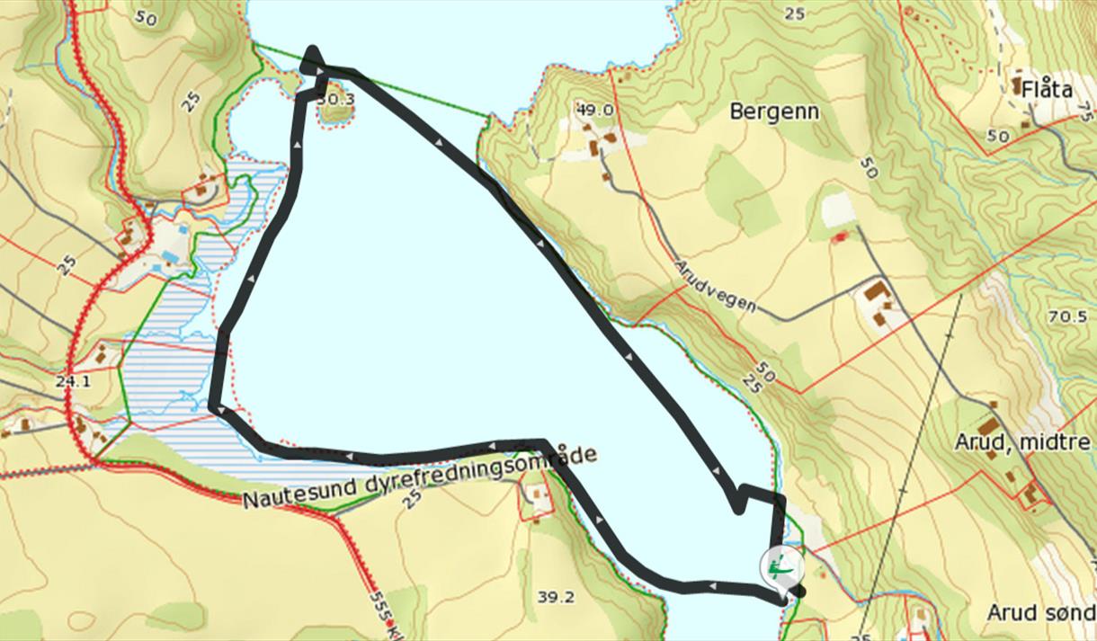 Turen fortsetter inn langs sivområder og fuglehabitater, der vannet kan være grunt. Du passerer to øyer, Vesle Kråka og Store Kråka. Det anbefales å ta en pause og spise på Vesle Kråka. På vei tilbake padler du rundt Store Kråka, og husk alltid å holde deg nær land.